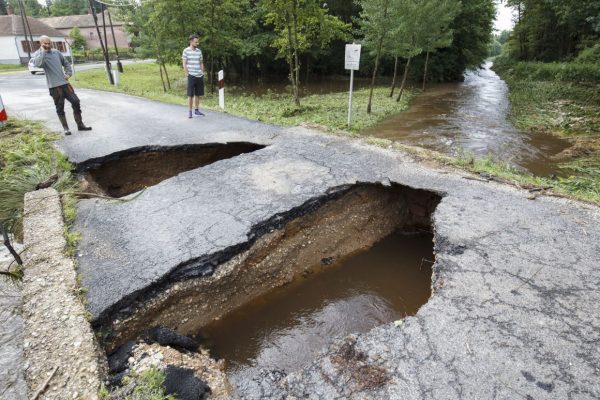 Víz borítja a Zalaszentgyörgy és Zalalövő közötti utat az éjszaka hirtelen lehullott nagy mennyiségű eső miatt. Vízátfolyások miatt kilenc alsórendű út egy-egy szakaszát kellett lezárni: