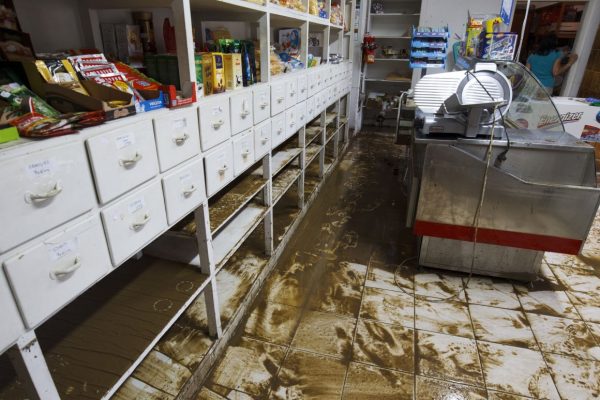 Az ár elöntötte az őrimagyarósi vegyes boltot. MTI fotó: Varga György