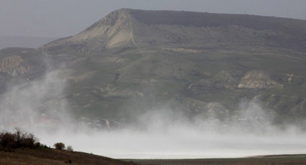 A félszigeten második napja tombol a hurrikán erejű, óránkénti több mint 100 kilométeres sebességű szélvihar, amely a Fekete-tengertől gáttal leválasztott Szaszik-Szivas sósvizű tóból sóval telített levegőt emelt fel legalább másfél méter magasságba Koktebel település közelében.