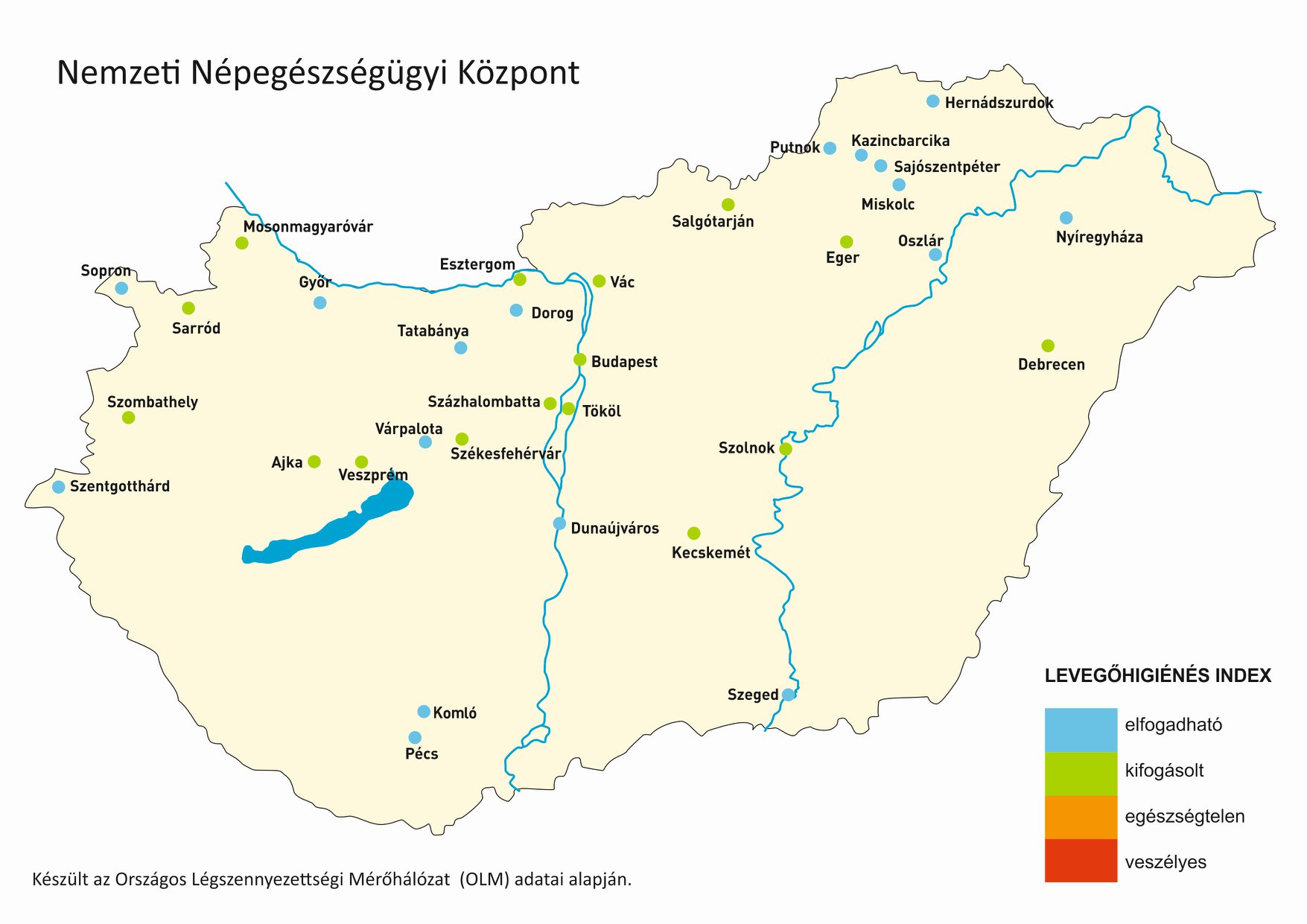 A Levegőhigiénés Index számításához használt adatok forrása: az Országos Légszennyezettségi Mérőhálózat