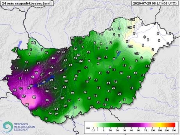 Az Országos Meteorológiai Szolgálat összegzése alapján olyan terület is volt, ahol több, mint 100 mm-nyi eső zúdult le 24 óra leforgása alatt: