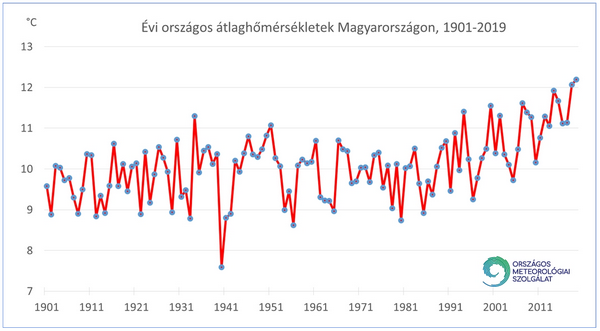 Az Országos Meteorológiai Szolgálat közölte, hogy az 1901-óta vezetett éghajlati adatok alapján a 2019-es év volt eddig a legmelegebb.