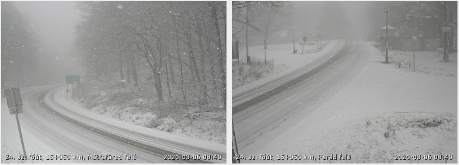 A Magyar Közút Zrt. webkameraképe a Dobogókő felé vezető útról és Mátraházáról: