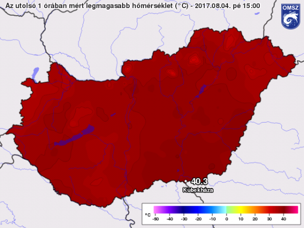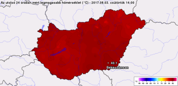 - Augusztus 4-én megdőlt a fővárosi napi melegrekord, és országosan is megközelítette a több mint száz éve mért legmagasabb értéket. Budapesten mostanáig 36,7 Celsius-fok volt a fővárosi csúcsérték, amelyet 1921-ben mértek. Újpesten délután 39,7 fokot mértek. Az országos csúcs végül nem dőlt meg, bár már többfelé emelkedett 40 fok köré a hőmérséklet. Az augusztus 4-én mért országos melegrekord 40,5 fok, amelyet 1905-ben Orosházán rögzítettek. Pénteken Kübekházán volt a legmelegebb, 40,3 fok.
