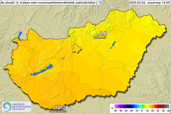 A rekord enyhe hajnalt szokatlanul enyhe nappali időszak követte. A 2019-ben Főnyeden mért 18,1 fokkal igen szoros volt a „verseny”, de végül Drávaszabolcson egy tizeddel meghaladta a rekord értéket a legmagasabb maximum hőmérséklet, így az új rekord 18,2 fok lett.