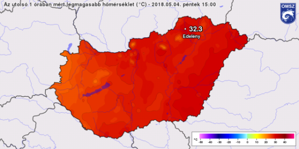 A május 4-i országos rekord eddig 32,0 C fok volt, amelyet 1946-ban Kaposváron mértek. Az új rekordot mostantól kezdve Edelény tartja, ahol 32,3 C fokig emelkedett a hőmérséklet.
