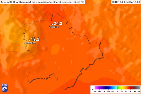 Max. hőmérsékletek Budapesten 2020.03.12-én forrás: Országos Metetorológiai Szolgálat