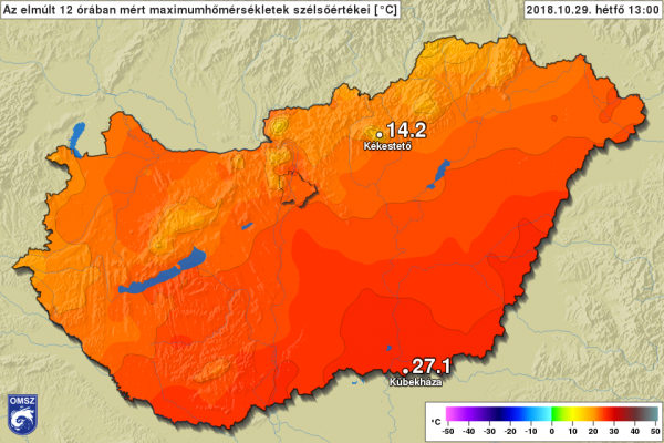 forrás: Országos Metetorológiai Szolgálat: maximum hőmérséklet 2020.03.12., (hitelesítés előtti adatok).
