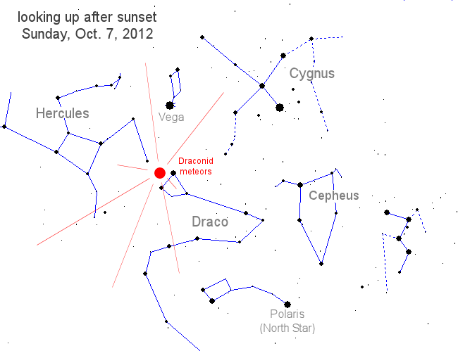 Október 6-10. között figyelhető meg minden évben a Drakonidák meteorraj csillaghullása. A legtöbb hullócsillag, azaz a maximum október 8-ra esik. Nem ez az egyetlen októberi hullócsillag zápor: 19-24. között érkeznek az Orionidák.