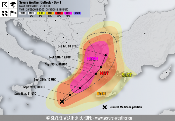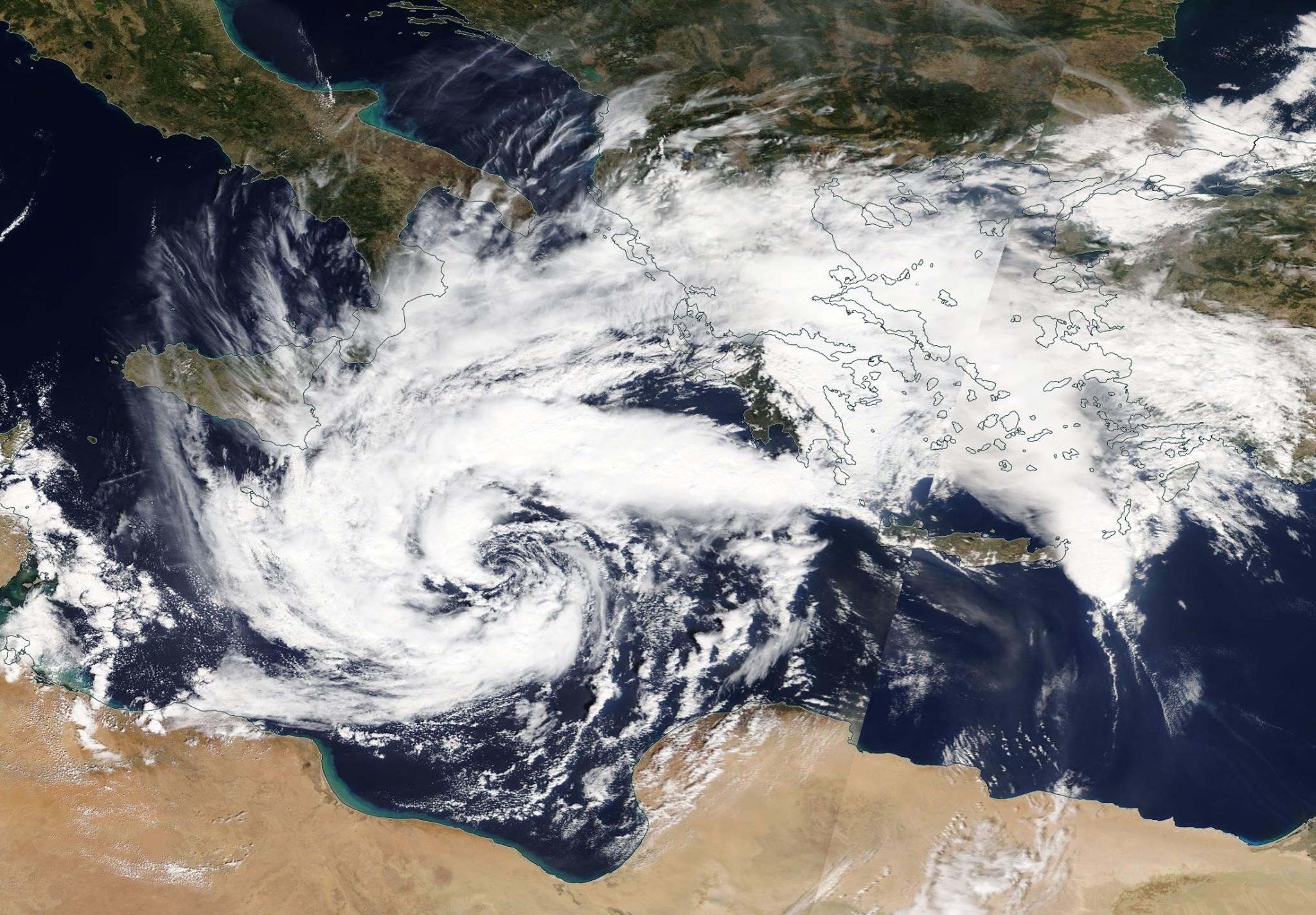 Egy viszonylag ritkán előforduló időjárási jelenség, medikán alakult ki a Földközi-tenger középső medencéje, illetve a Jón-tenger felett. Szombaton (2018.09.29.) várható a szárazföldre érése a Peloponnészoszi-félszigeten.