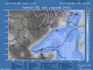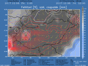 A szombat reggeli modellfutás szerinti legvalószínűbb jövőkép erre a napra: A napközben országszerte (legkevésbé a nyugati, északnyugati határvidéken) felerősödő, majd estére a keleti és középső országrészben viharossá fokozódó északkeleti széllel (60-90 km/órás széllökések) zúdul be várhatóan a hideg levegő, miközben a déli óráktól, dél, délnyugat felől egy mediterrán ciklon intenzív csapadék mezeje érkezik a térségbe. A kettő találkozásakor a csapadék halmazállapota térben és időben is igen változatosan alakul. Előreláthatólag szombat délutántól, kezdetben az Alpokalján és az északi hegyekben, majd estétől észak, északkelet felől síkvidéken is egyre többfelé intenzív havas esőbe, fagyott esőbe, havazásba, átmenetileg helyenként ónos esőbe is válthat az addigi eső, de mindeközben a szárazabb hideg levegőnek köszönhetően hajnalra legyengül, sokfelé meg is szűnik a csapadék. Ahány modellfutás, annyi lehetőség jön ki valószínűbbnek.