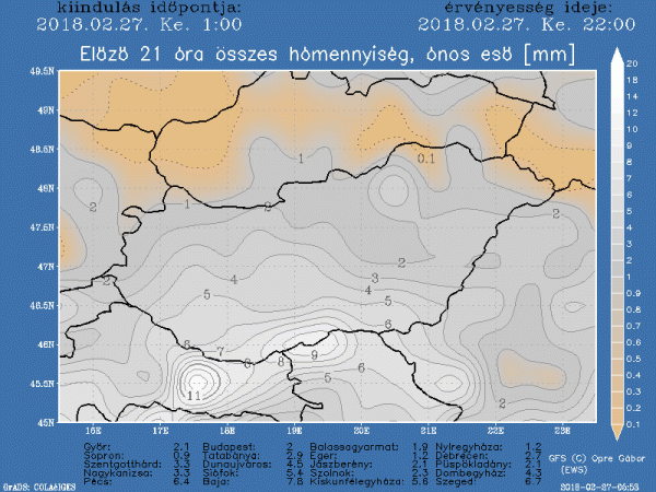 Szombat éjjelre most az látszik valószínűbbnek, hogy az éjszaka első felében még kitart az erős csapadék. Az északi, északkeleti országrészben, az esti óráktól a havazás lesz jellemzőbb, míg a középső és északnyugati térségben szinte az összes halmazállapoti forma előfordulhat, a déli országrészben pedig előreláthatólag az éjszaka második felében váltja, de már gyengülő havazás, havas- és ónos eső az addigi esőt.