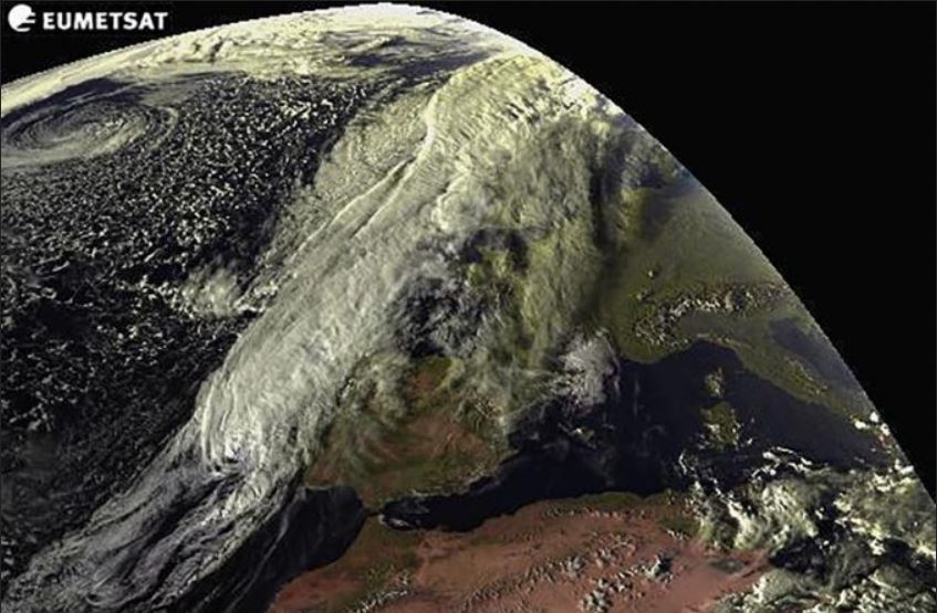 Eumetsat műholdfelvétel Leslie partra érkezéséről