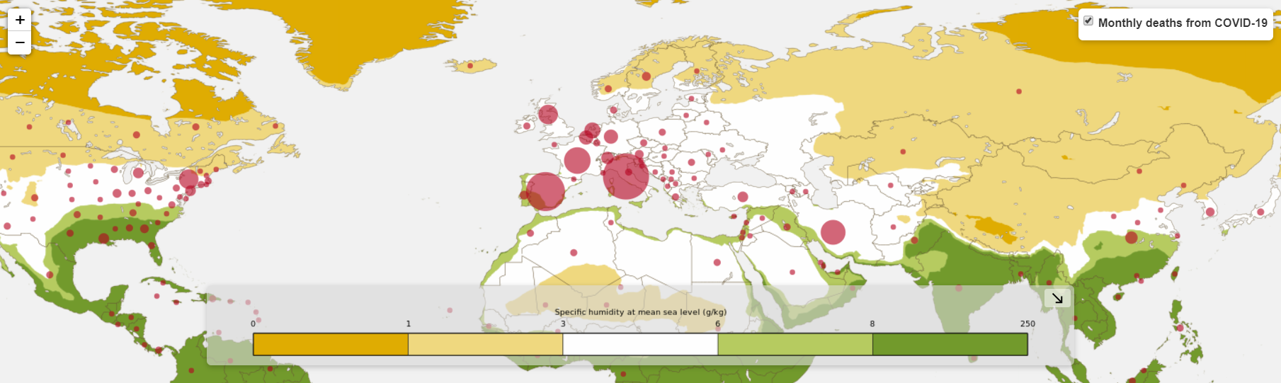 A tanulmány azt állítja, hogy a koronavírus – a tanulmány készítésekor elérhető adatok alapján – a leghatékonyabban azokban a régiókban terjedt, ahol az átlaghőmérséklet +5 és +11 C fok között volt, az átlagos páratartalom pedig 50 és 80 % között mozgott. Ezen hőmérsékletek és páratartalom alapján a szerzők arra következtettek, hogy márciusban a covid-19 vírus által leginkább veszélyeztetett területek a járvány kiindulási pontjától északra fekvő területek, mely térségbe beletartozhat: „Mandzsuria, Közép-Ázsia, Kelet-Európa, Közép-Európa, a Brit-szigetek, az Egyesült Államok északkeleti és középnyugati része, valamint Brit Columbia.” A szerzők hozzáfűzik, hogy a vírus alacsonyabb szinten, de elterjedhet a trópusi régiókban is. Illetve, hogy a nyári időszakban valószínűsíthetően lelassul, de késő ősszel ismét felgyorsulhat a terjedése.
