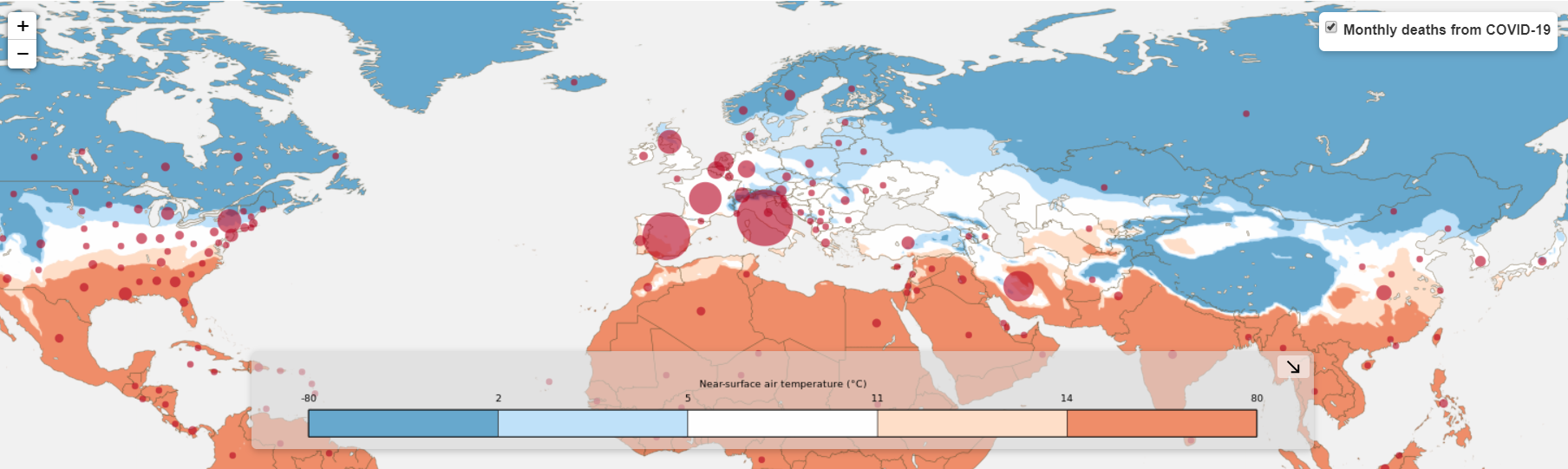 A kezdetben megjelenő optimistább szakértői meglátás alapján bízni lehetett abban, hogy az új vírus, az influenza vírusokhoz hasonlóan majd elgyengül a meleg időjárás beköszöntével. A korábbi koronavírusok okozta járványokban megfigyelhető szezonalitás tapasztalatai is ezt sugallták. Azonban a friss tapasztalatok már pesszimistább képet festenek. Egyre több adat lát napvilágot, mely szerint a hőmérséklet emelkedése nem befolyásolja olyan mértékben a vírus terjedési képességét, mint várták.