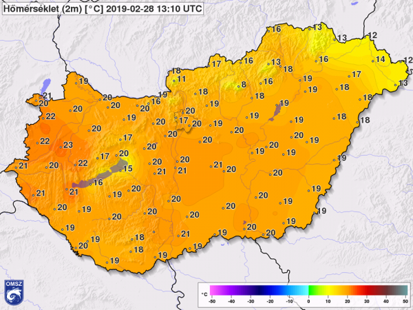 Ahogyan azt sejteni lehetett előre, szombaton az erős déli széllel beáramló meleg levegő jócskán az évszakos átlagnál melegebb időjárást eredményezett.