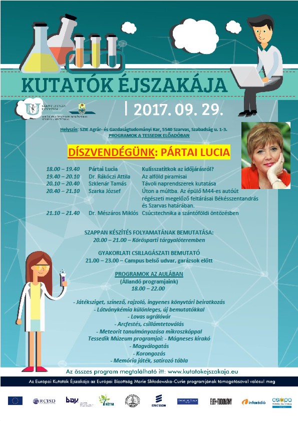 2017.09.29-én, a Szent István Egyetem Agrár- és Gazdaságtudományi Karának szervezésében hallgathatják meg Pártai Lucia előadását „Kulisszatitkok az időjárásról?” címmel.