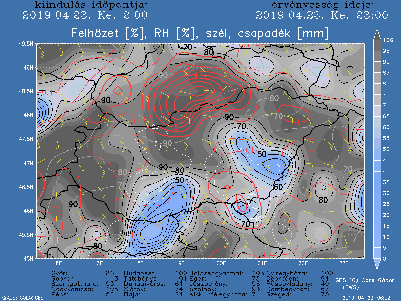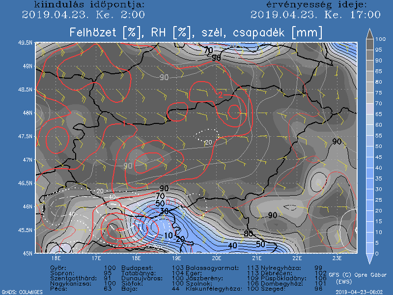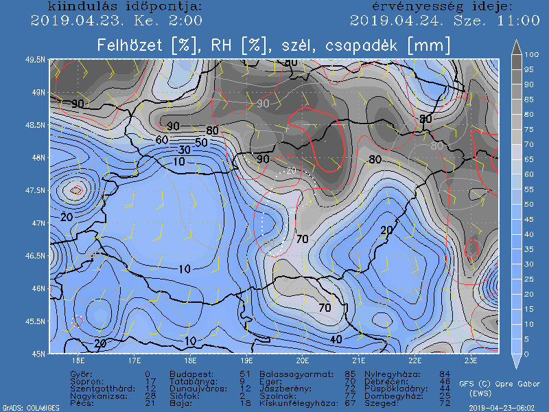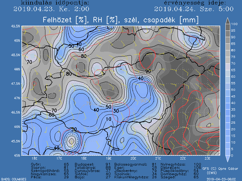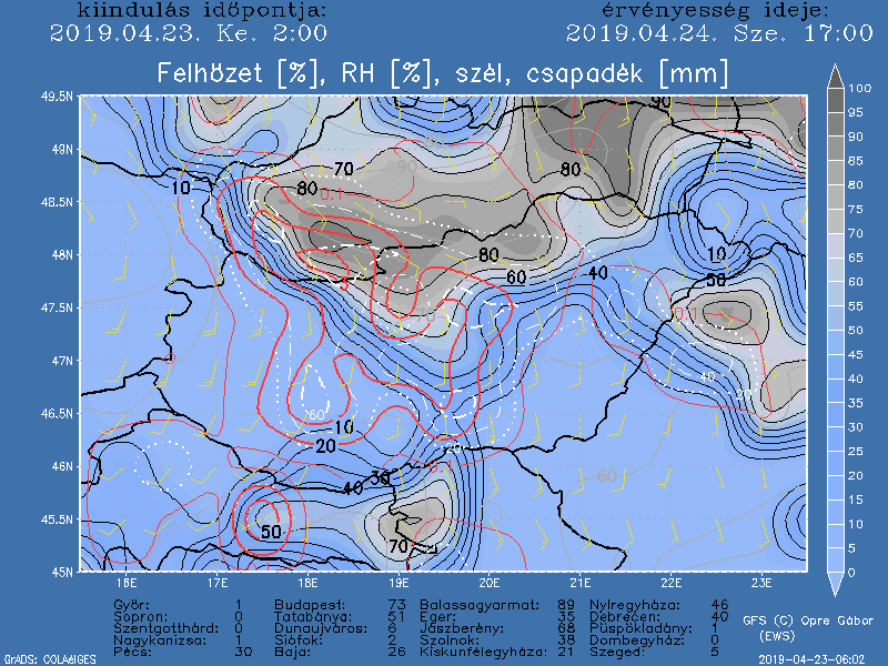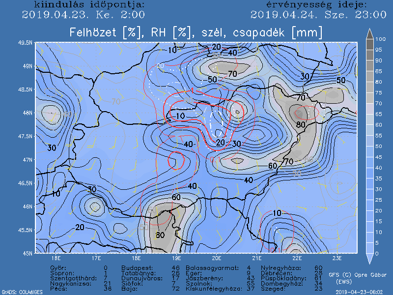 A képekből az olvasható ki, hogy hazánk fölött pénteken még meglehetősen magas koncentrációban lesz a levegőben az észak-afrikai eredetű sivatagi homok. Ezt az esti órákban szórványosan kialakuló záporok, zivatarok lehozzák a földfelszínre, összesározva mindent, amit a csapadék ér. Majd éjjel, ahidegfront érekzésének köszönhetően északnyugatira forduló légmozgás kisöpri a poros levegőt hazánk fölül.