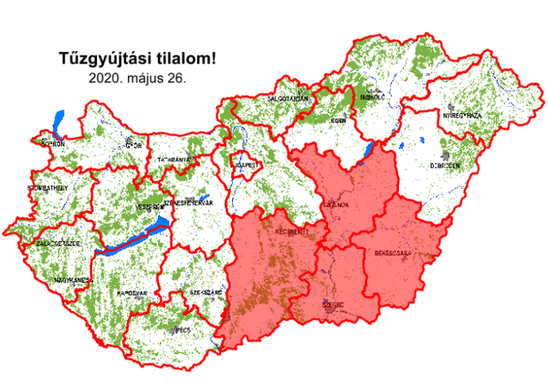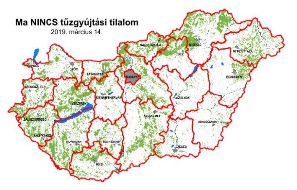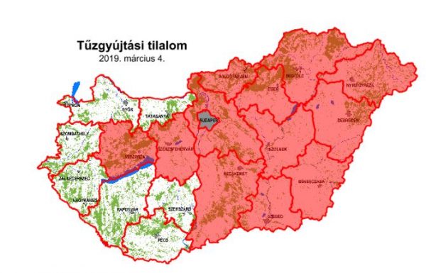 A Földművelésügyi Minisztérium közleménye szerint tilos a tűzgyújtás a kijelölt tűzrakó helyeken is, mert az erősödő felmelegedés, valamint a szeles és csapadékmentes napok számának növekedése miatt fokozott tűzveszély alakult ki.